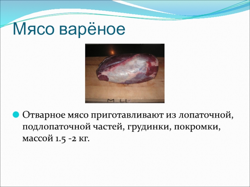 Слайд 9Мясо варёное