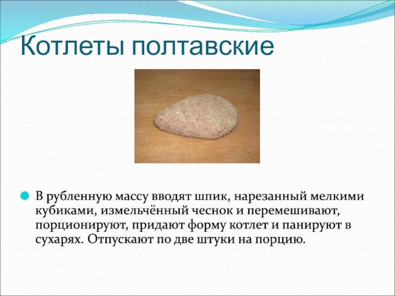 Слайд 30Котлеты полтавские