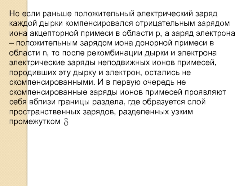 Слайд 15Но если раньше положительный электрический заряд каждой дырки компенсировался отрицательным