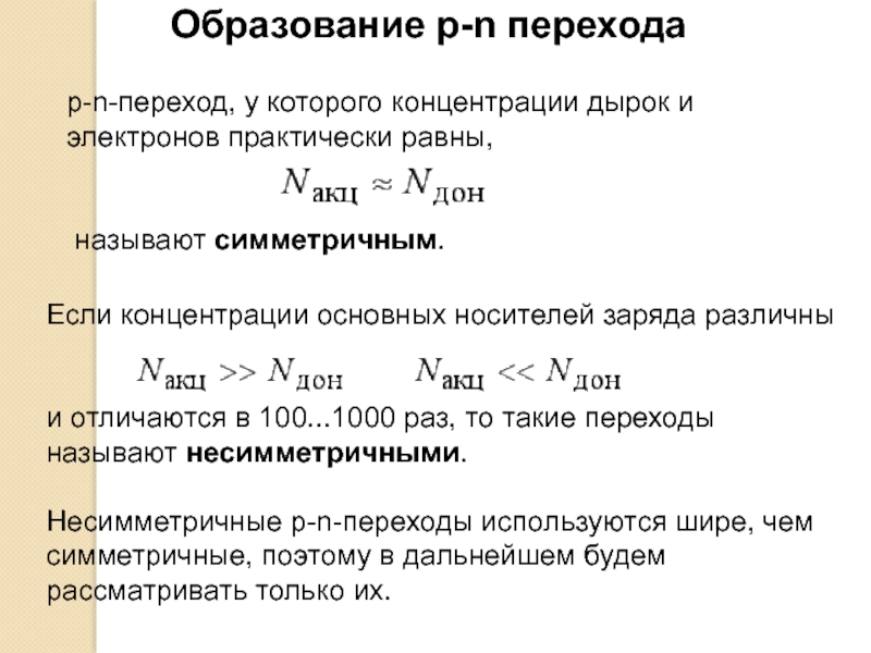 Несимметричные p-n-переходы используются шире, чем симметричные,