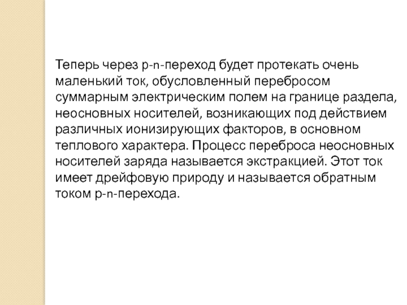 Слайд 25Теперь через р-n-переход будет протекать очень маленький ток, обусловленный перебросом