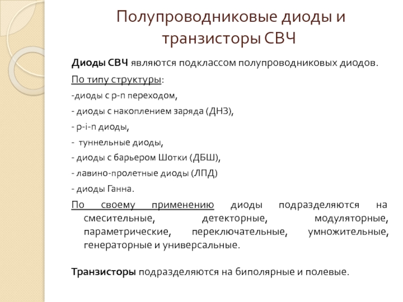 Слайд 31 Полупроводниковые диоды и транзисторы СВЧ