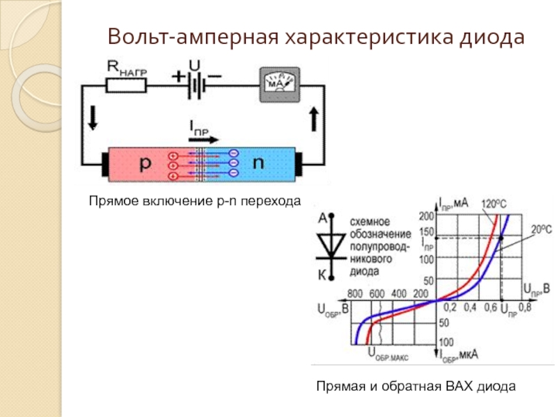 Слайд 21По мере увеличения внешнего напряжения прямой ток p-n-перехода возрастает. Основные