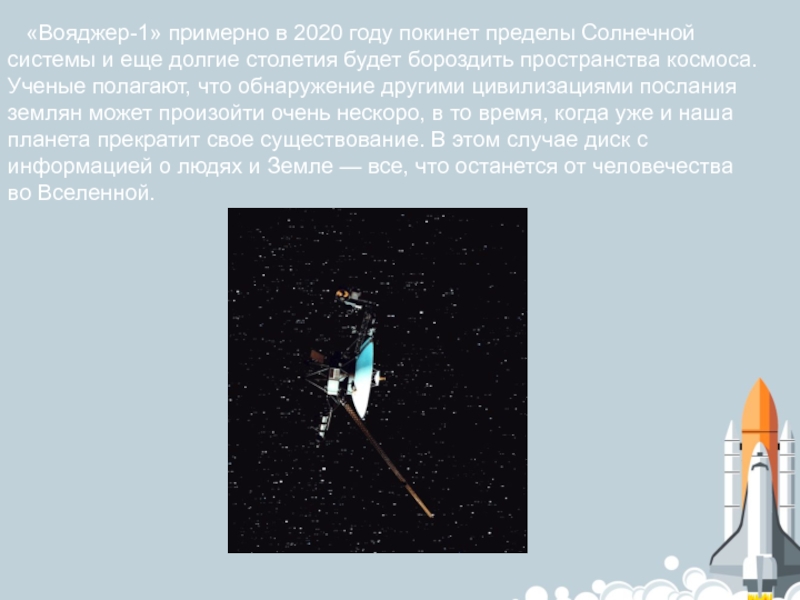 Слайд 17 «Вояджер-1» примерно в 2020 году покинет пределы Солнечной