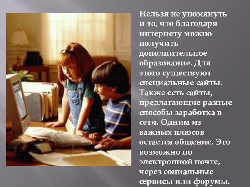Слайд 25Нельзя не упомянуть и то, что благодаря интернету можно получить дополнительное