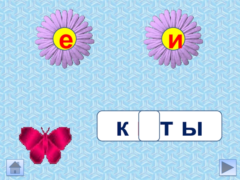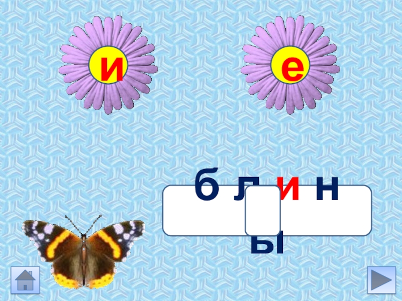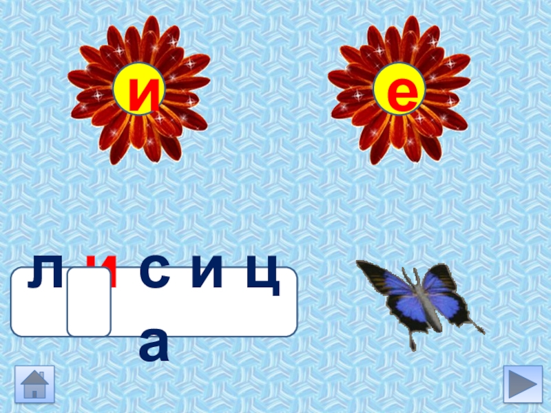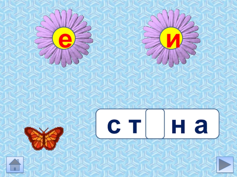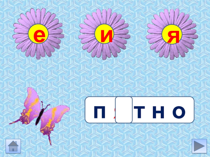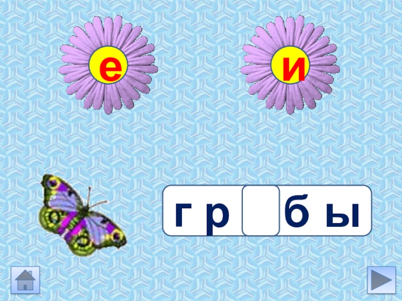 Инструкция Выбери задание Подумай какую букву ты вставишь в слове. Устно подбери проверочное слово (если гласная проверяется)Нажми на букву Бабочка сядет на цветок с нужной буквой