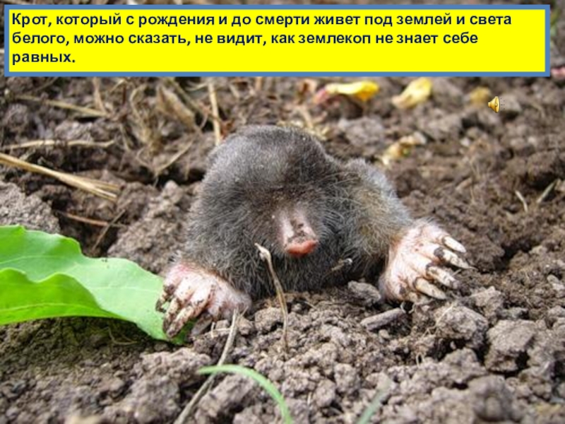 Слайд 9Крот, который с рождения и до смерти живет под землей