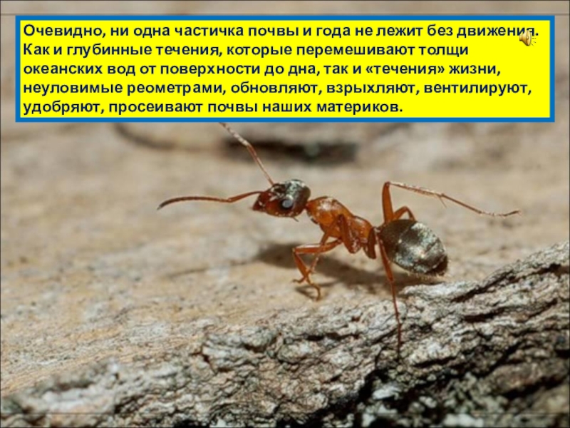 от поверхности до дна, так и «течения» жизни, неуловимые реометрами, обновляют, взрыхляют, вентилируют, удобряют, просеивают почвы наших материков.