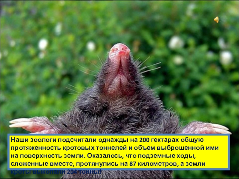 Слайд 10Наши зоологи подсчитали однажды на 200 гектарах общую протяженность кротовых