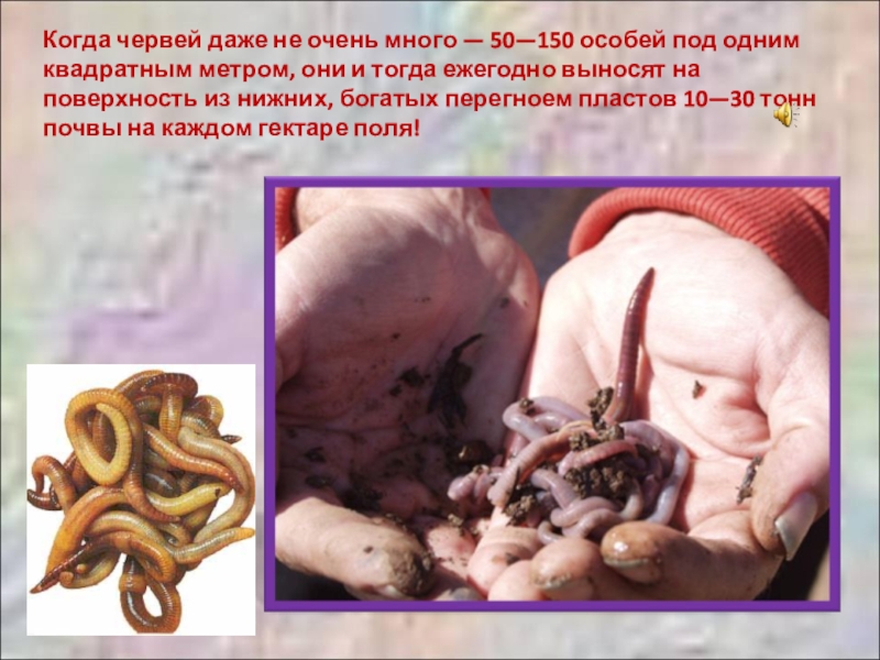Слайд 5Когда червей даже не очень много — 50—150 особей под