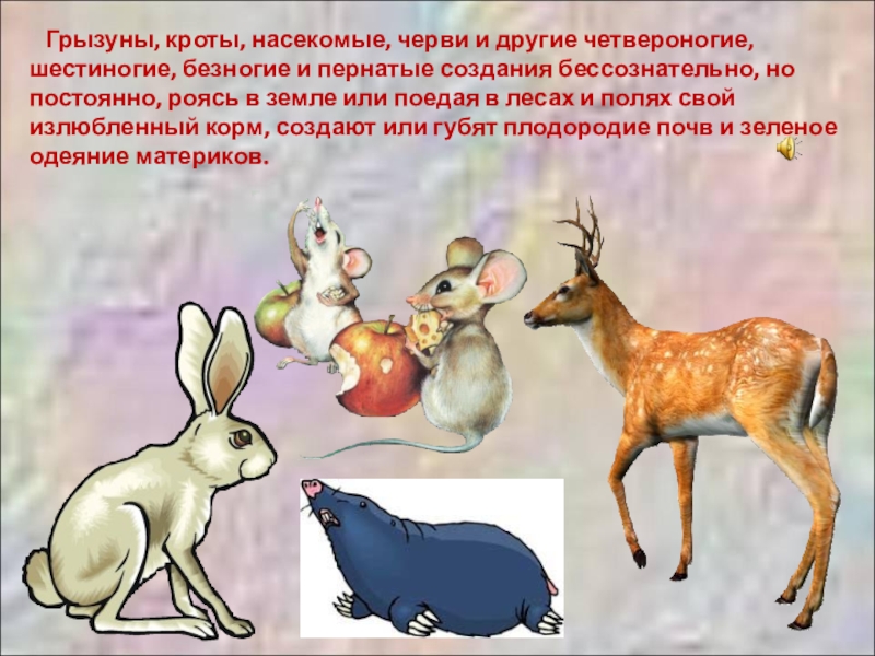 Слайд 2 Грызуны, кроты, насекомые, черви и другие четвероногие, шестиногие,