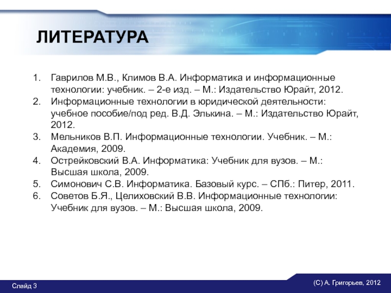 Слайд 3(С) А. Григорьев, 2012