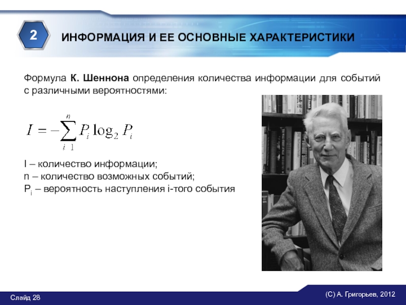 Шеннона определения количества информации для событий с различными вероятностями: