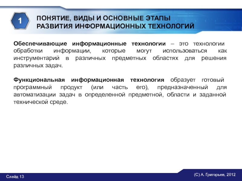 Обеспечивающие информационные технологии – это технологии обработки информации, которые могут