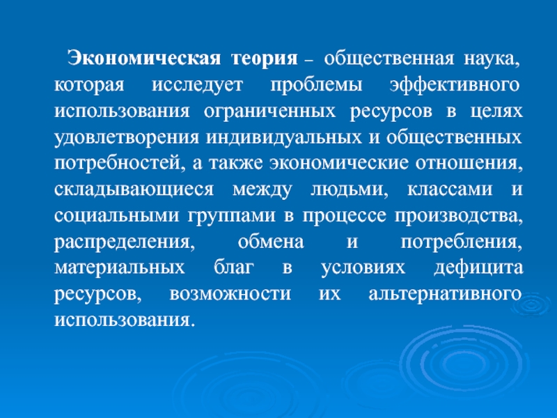 Экономическая теория – общественная наука, которая исследует проблемы эффективного