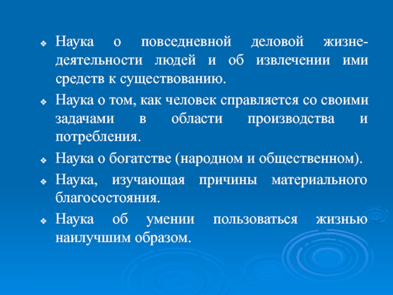 Наука о повседневной деловой жизне-деятельности людей и об извлечении ими