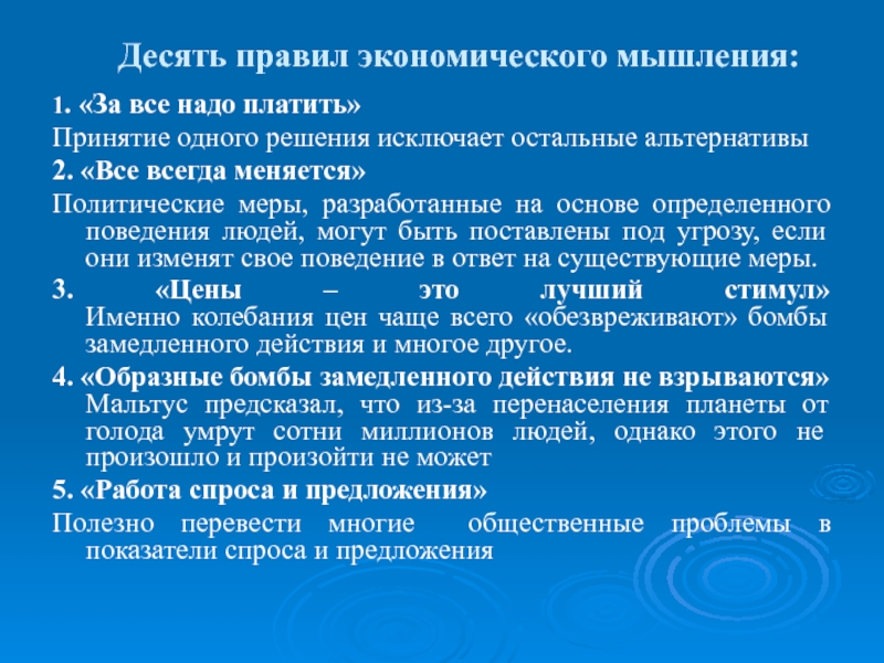 Слайд 12Десять правил экономического мышления: