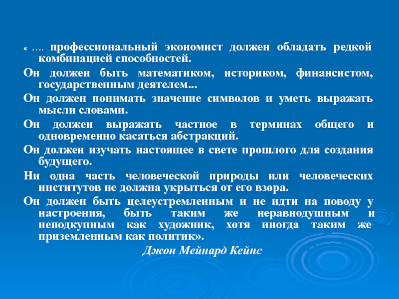 « …. профессиональный экономист должен обладать редкой комбинацией способностей.