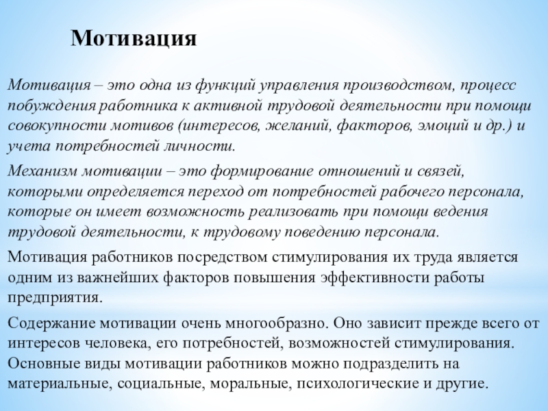 Мотивация – это одна из функций управления производством, процесс побуждения