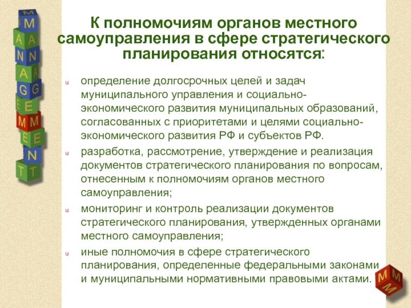 полномочия органов местного самоуправления в сфере стратегического планирования;