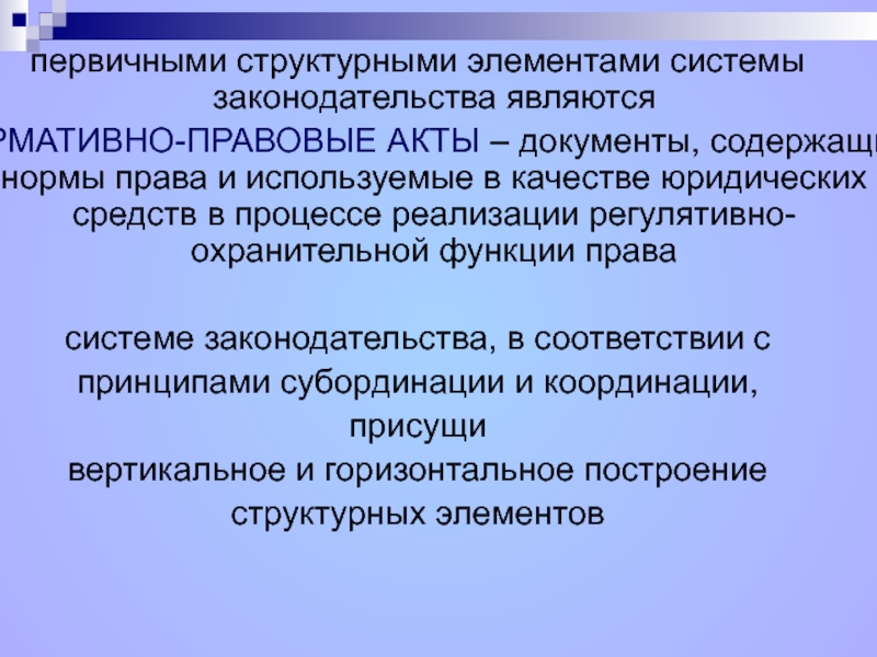 Вертикаль системы законодательства основывается на принципах субординации, подчинения, иерархичности