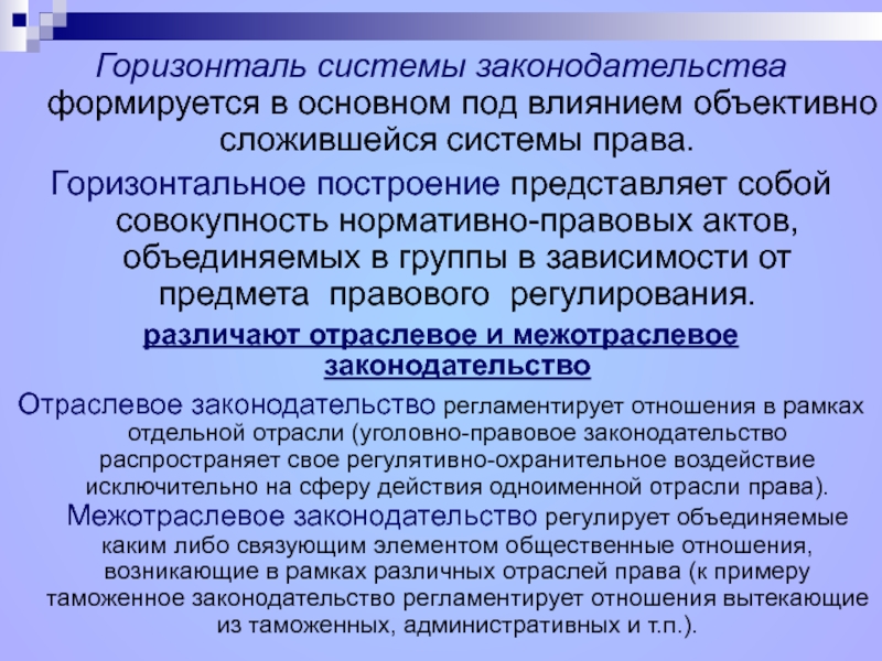 Горизонталь системы законодательства формируется в основном под влиянием объективно сложившейся