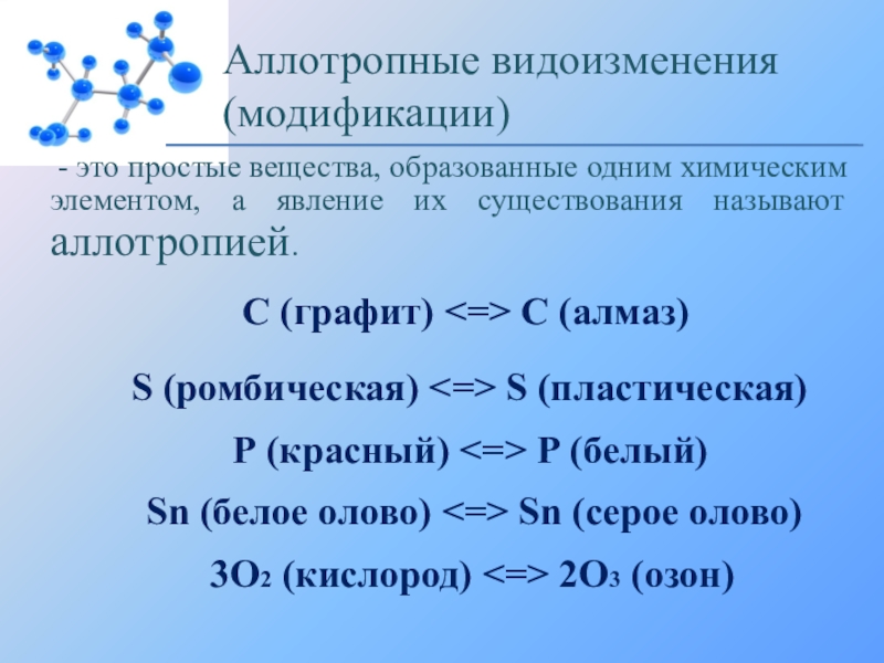 Слайд 26Одной из причин многообразия неорганических веществ является аллотропия, которая может