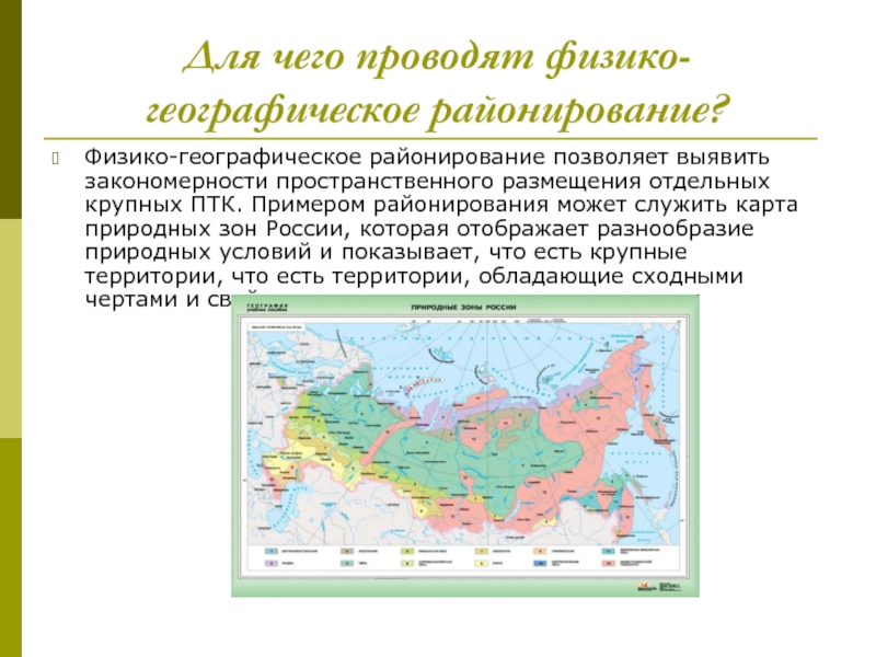 чего проводят физико-географическое районирование.Формировать умения работать с текстом учебника и презентацией к уроку.