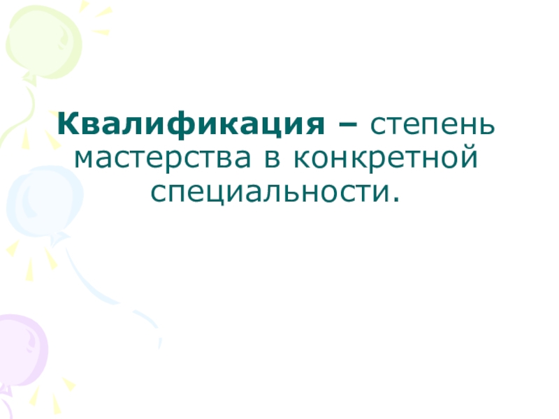 Слайд 10Квалификация – степень мастерства в конкретной специальности.