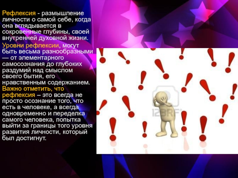 Слайд 20Рефлексия - размышление личности о самой себе, когда она вглядывается