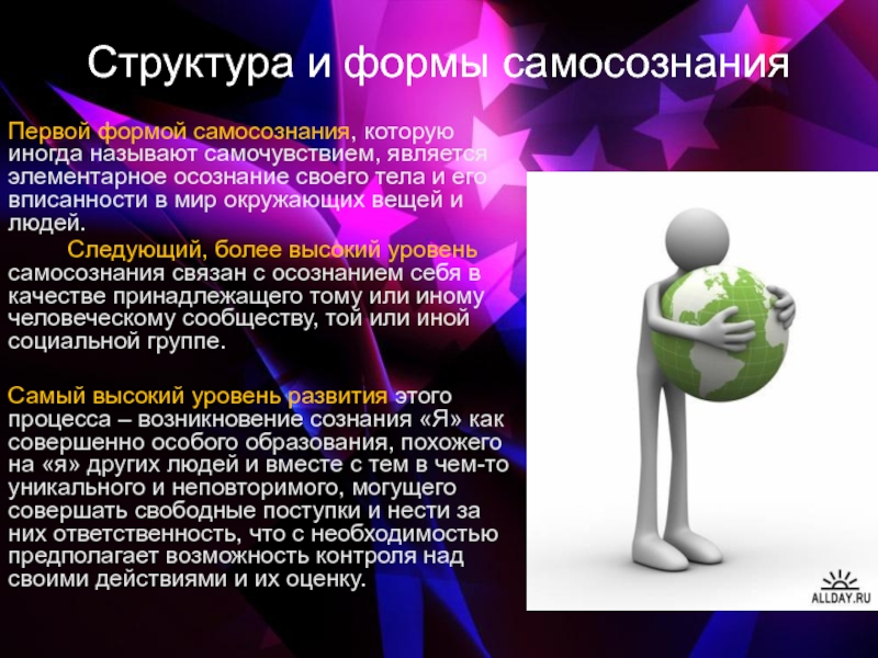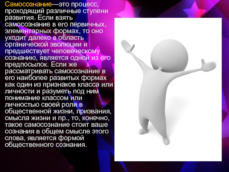 Слайд 17Самосознание—это процесс, проходящий различные ступени развития. Если взять самосознание в