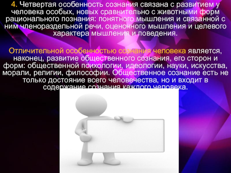 Слайд 94. Четвертая особенность сознания связана с развитием у человека особых,