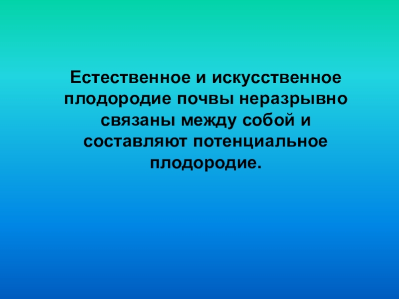 Слайд 12Естественное и искусственное плодородие почвы неразрывно связаны между собой и