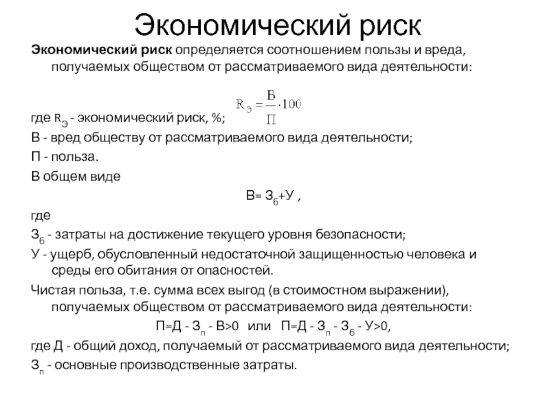 Экономический риск определяется соотношением пользы и вреда, получаемых обществом