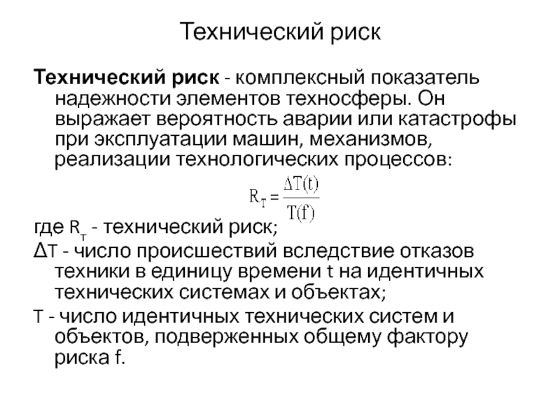 Технический риск - комплексный показатель надежности элементов техносферы. Он
