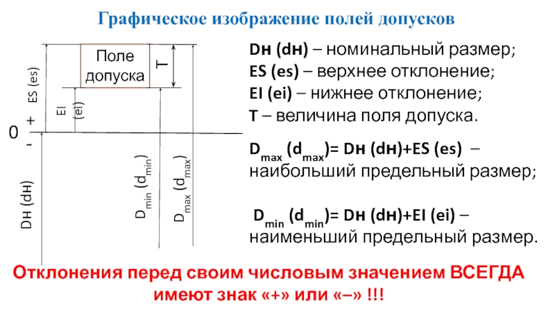 Отклонения перед своим числовым значением ВСЕГДА имеют знак «+» или «–» !!!