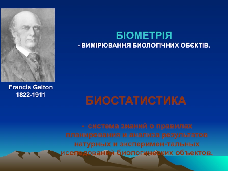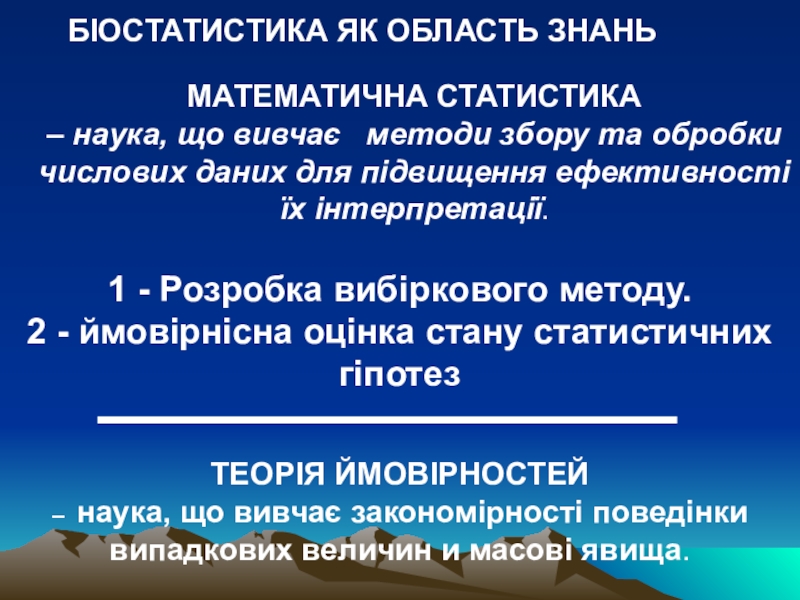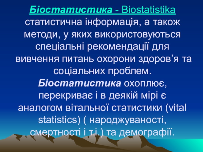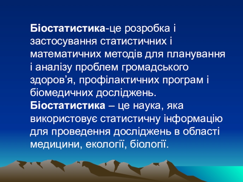 Слайд 17Біостатистика-це розробка і застосування статистичних і математичних методів для планування