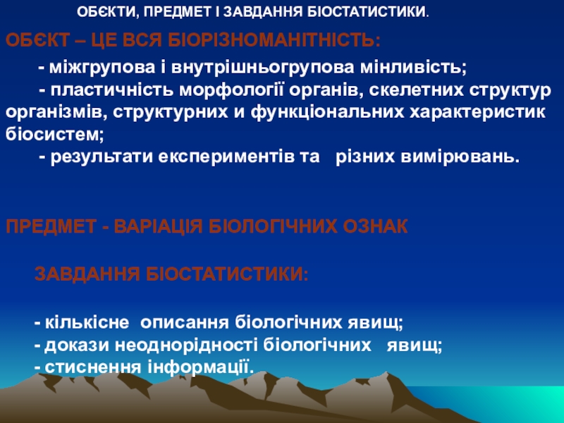 ПРЕДМЕТ - ВАРІАЦІЯ БІОЛОГІЧНИХ ОЗНАК