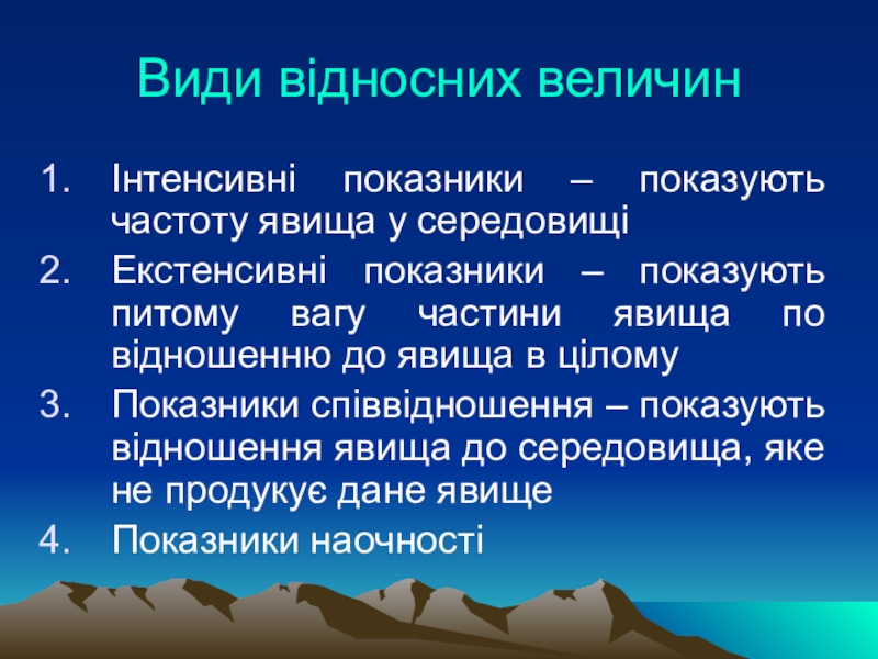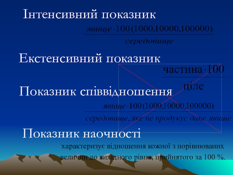 Показники співвідношення – показують відношення явища до середовища, яке не продукує дане явище