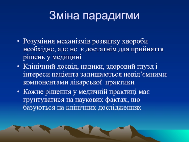 Кожне рішення у медичній практиці має грунтуватися на наукових фактах, що базуються на клінічних дослідженнях