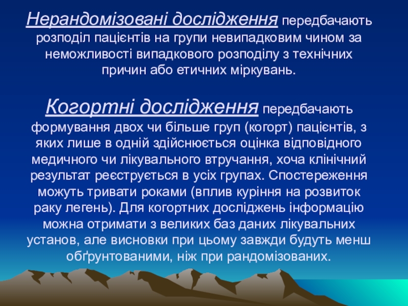 Слайд 15Нерандомізовані дослідження передбачають розподіл пацієнтів на групи невипадковим чином за