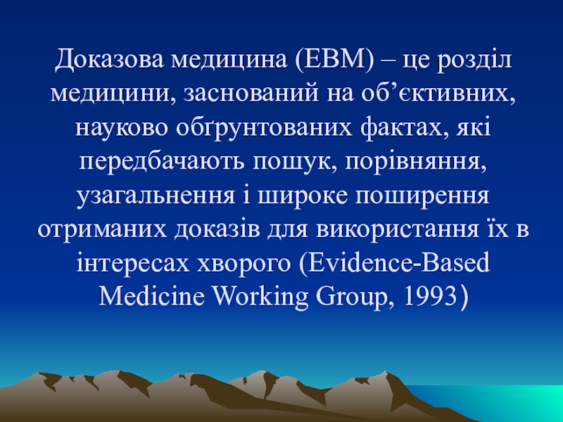 Слайд 13Доказова медицина (EBM) – це розділ медицини, заснований на об’єктивних,
