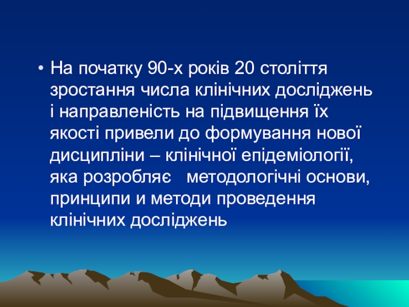 дисципліни – клінічної епідеміології, яка розробляє методологічні основи, принципи и методи проведення клінічних досліджень