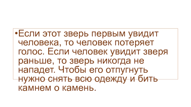 Слайд 4Если этот зверь первым увидит человека, то человек потеряет голос.