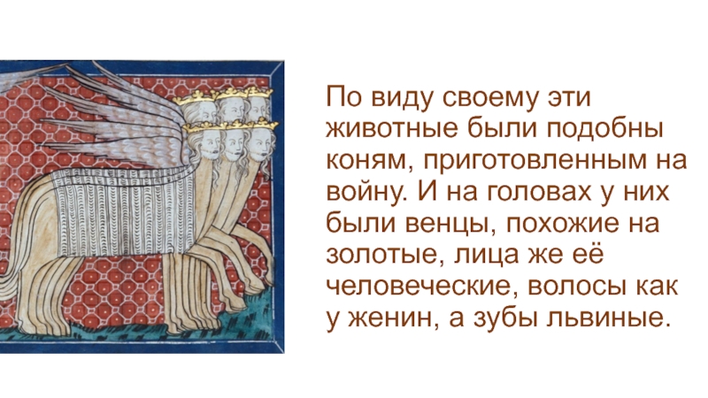 Слайд 23По виду своему эти животные были подобны коням, приготовленным на