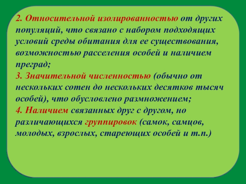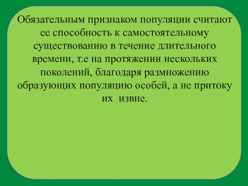 Слайд 6Обязательным признаком популяции считают ее способность к самостоятельному существованию в