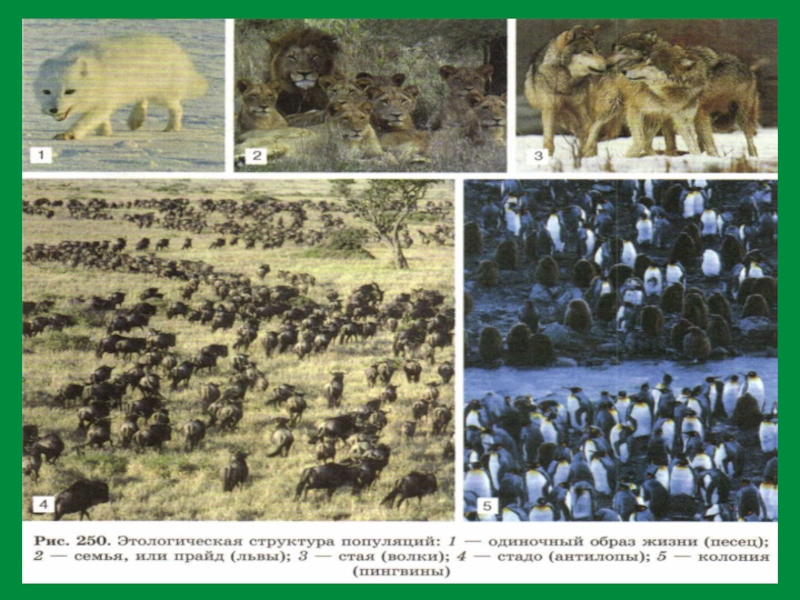 4. Наличием связанных друг с другом, но различающихся группировок (самок, самцов, молодых, взрослых, стареющих особей и т.п.)