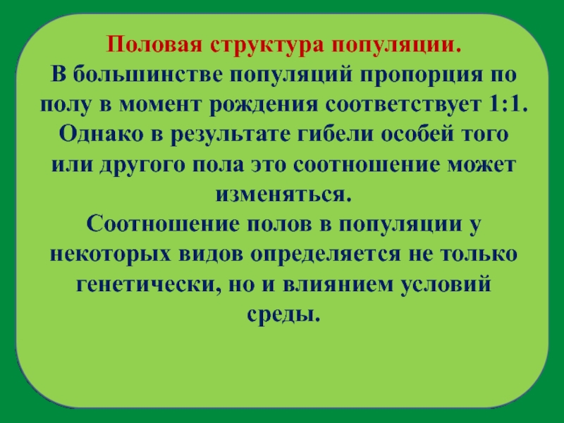 Важной отличительной чертой популяции является соотношение в ней особей
