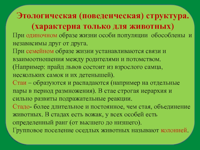 Слайд 21Этологическая (поведенческая) структура.