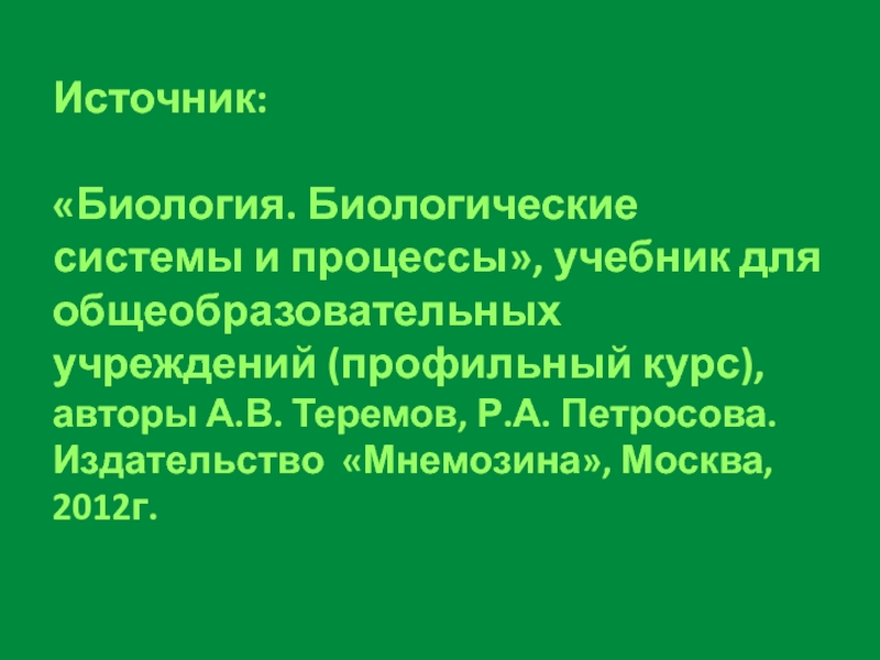 «Биология. Биологические системы и процессы», учебник для общеобразовательных учреждений